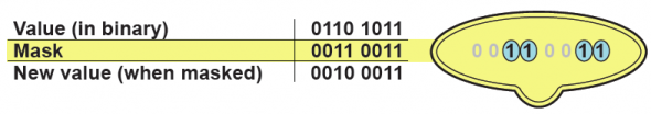 The word subnet is used since subnetworks of an entire network are really what we typically encounter. But what’s a mask? Just as a party mask hides some of your face while exposing your eyes, a mask in IP and subnet contexts masks-off (blocks or hides) some bits of an IP address and allows other bits to be seen or used. Thinking digitally about a subnet mask’s bits is aided by viewing them digitally, in binary, as if through a mask like the one shown. Ones in the mask are like “holes” that expose the network ID bits (street). Zeros in the mask hide the IP bits not used for the network ID, thus revealing the host ID (house). Said another way, the new value can see only the original value’s bits that have not been blocked by 0’s in the mask.