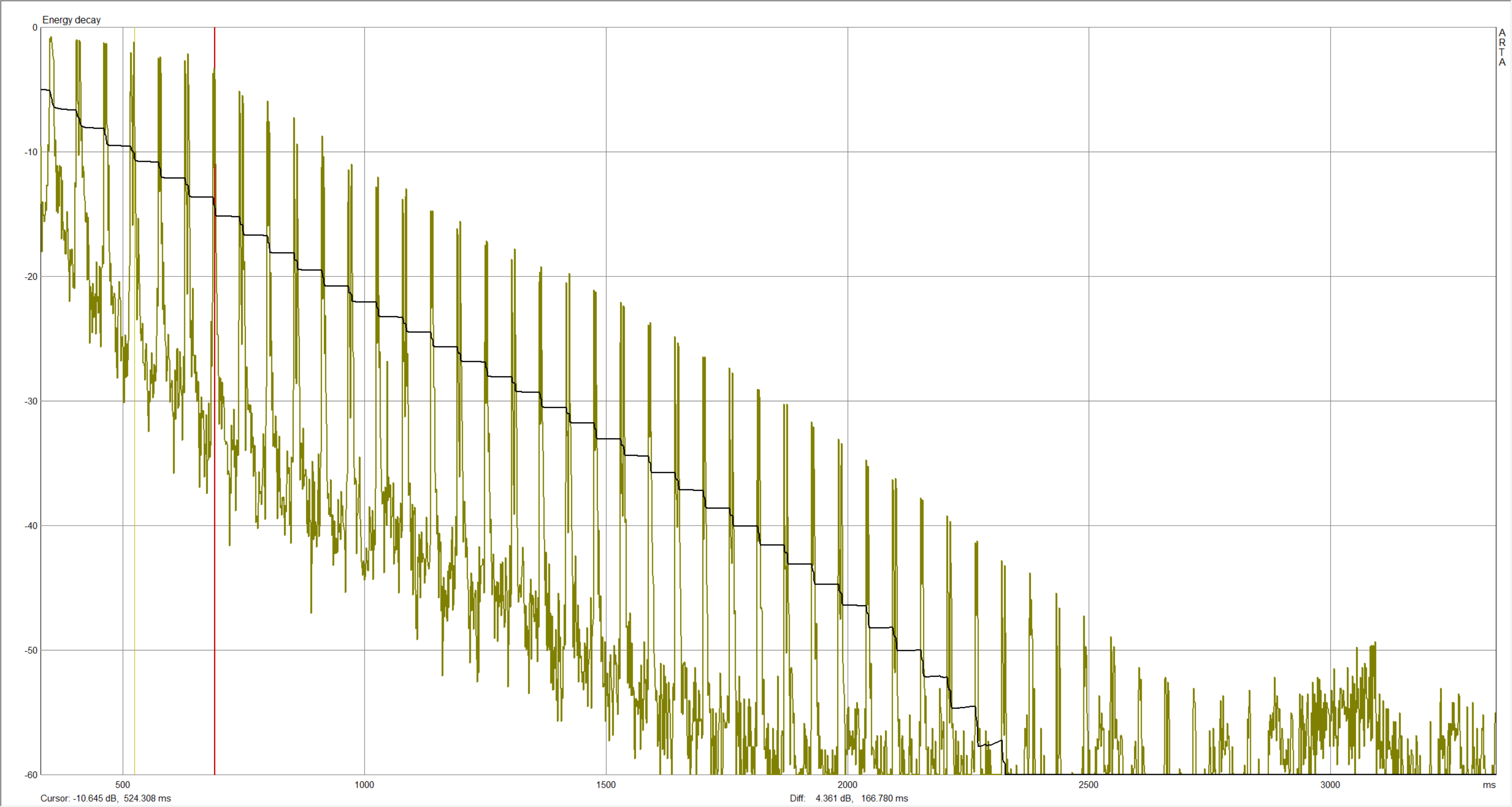 Figure 2 – Log-squared impulse response, including Schroeder integration curve.